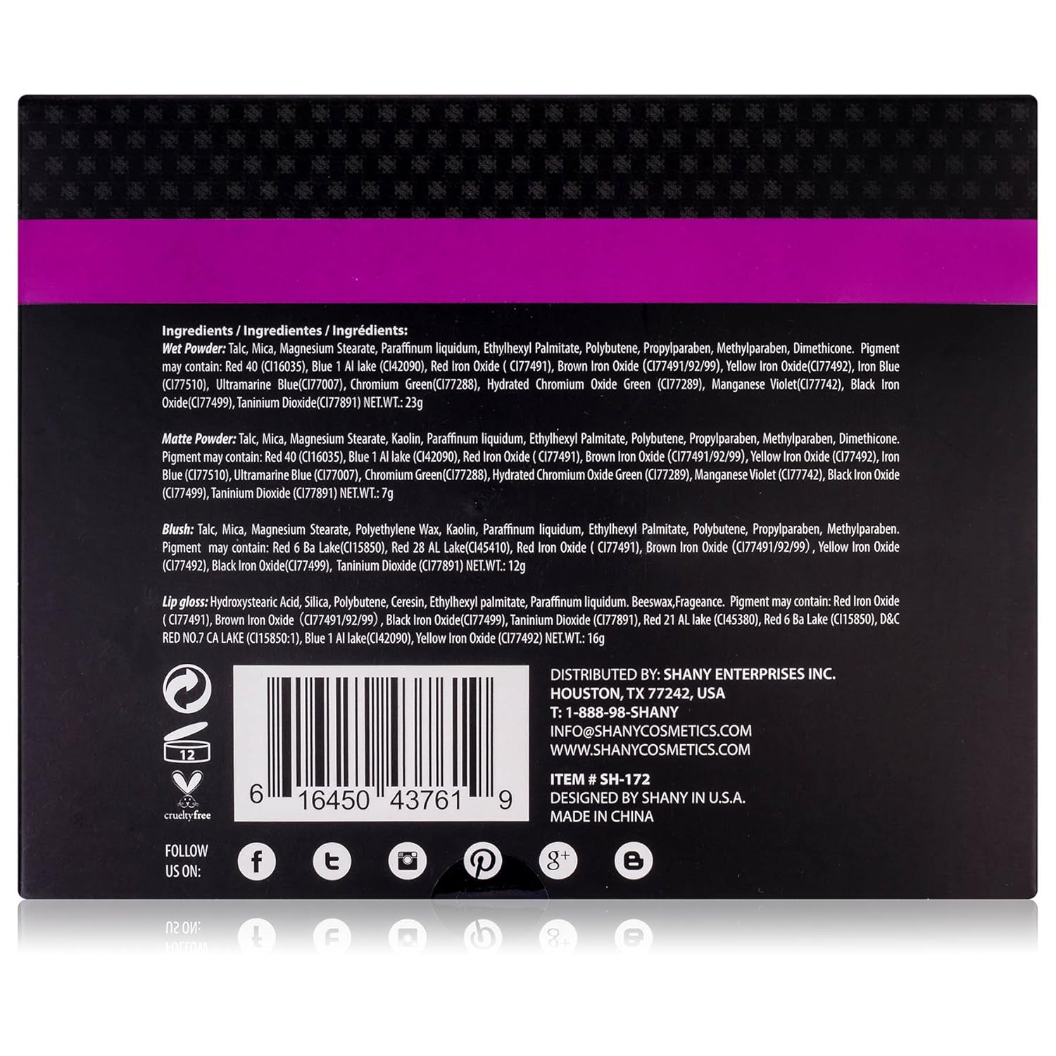 Cruelty-Free & Non-Toxic: SHANY is a proud member of PETA and ensures that all products are not tested on animals.